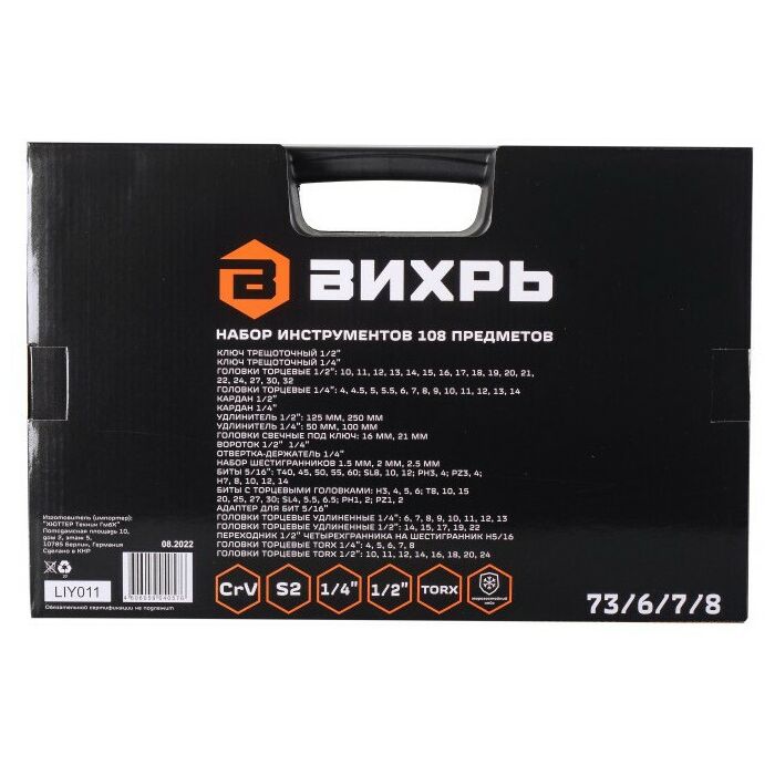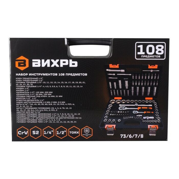Описание Вихрь 1/2", 1/4", CrV, в кейсе 108 предметов