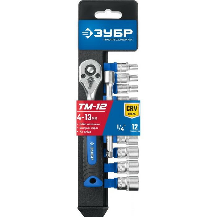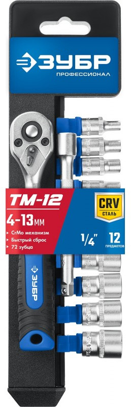 Набор торцовых головок Зубр Профессионал ТМ-12М 12 предметов, (1/4") [27645-H12]