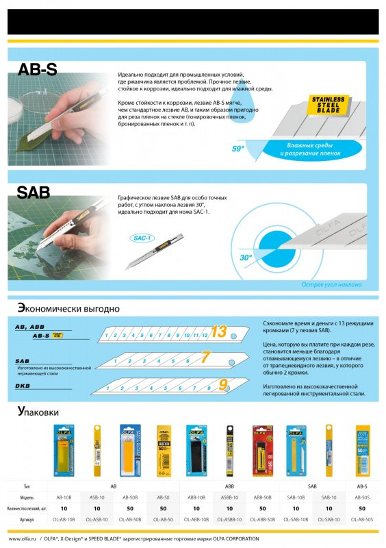 Наличие товара OLFA OL-ABB-50B EXCEL BLACK