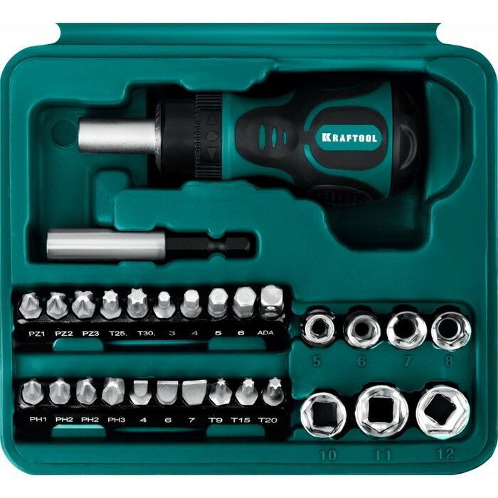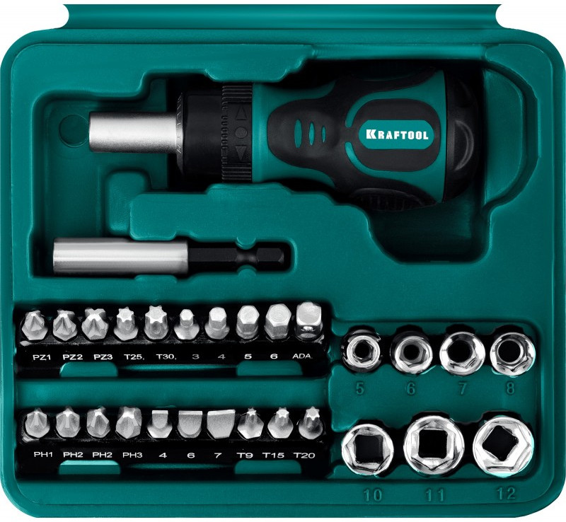 Профессиональный компактный набор KRAFTOOL предназначен для применения в комплекте с ручным и электроинструментом
