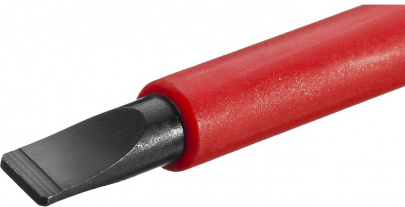 Профессиональная диэлектрическая отвертка для проведения слесарно-монтажных работ. Стержень изготовлен их хромомолибденовой стали на высокоточном оборудовании