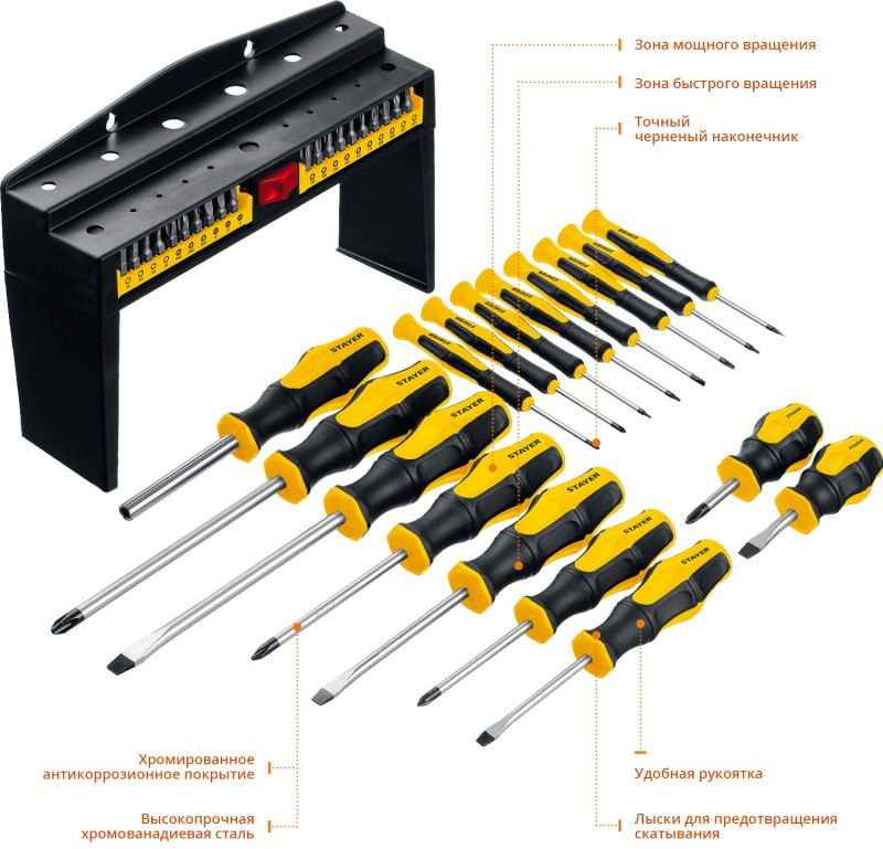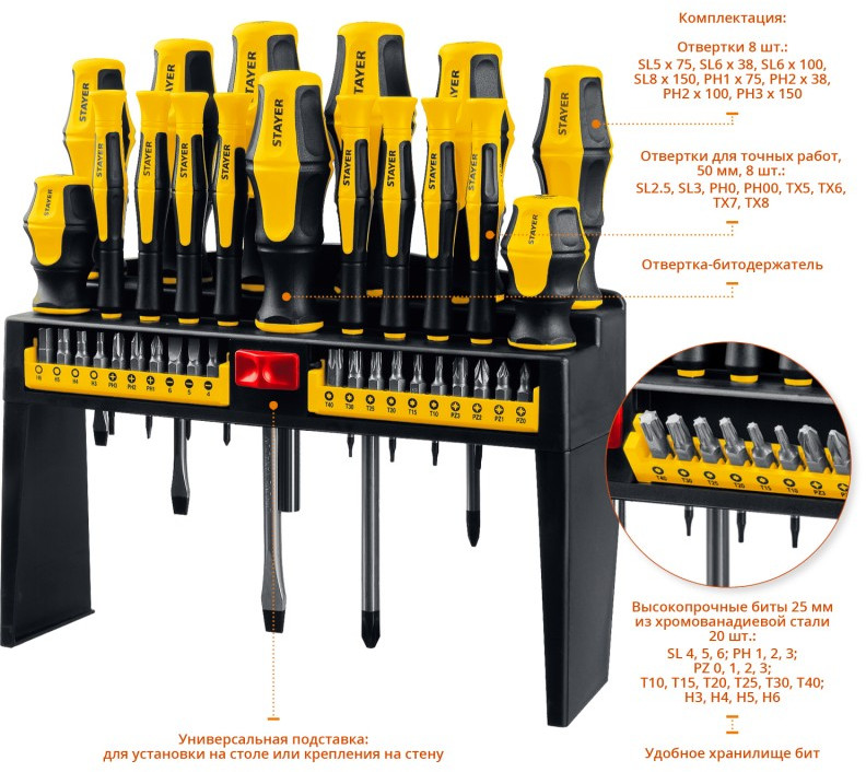Многофункциональный набор слесарных отверток и отверток для точных работ в стойке. Биты и стержни отверток изготовлены из высококачественной Cr-V стали