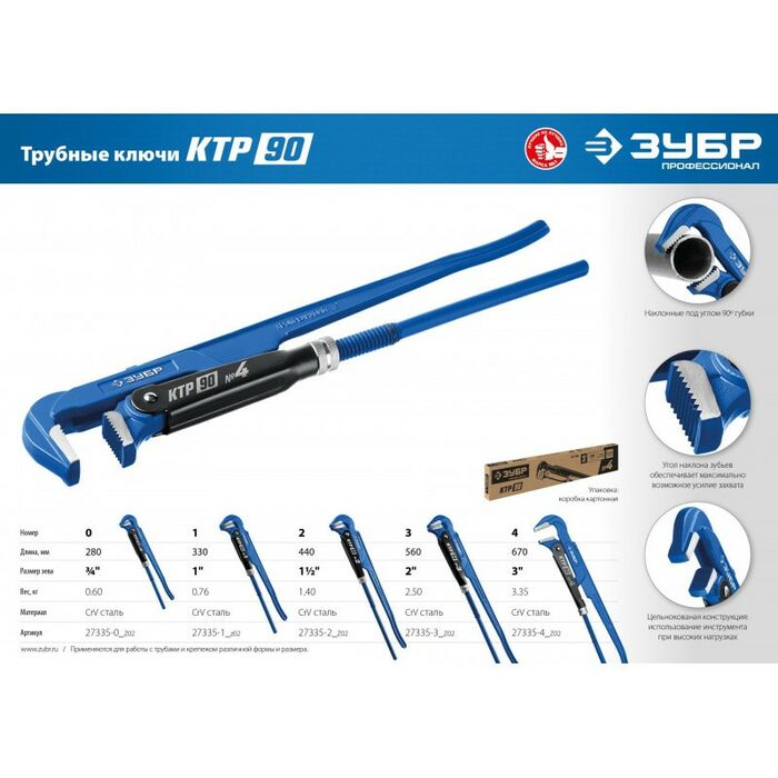 Трубные ключи ЗУБР предназначены для профессионального применения в сантехнических и слесарных работах, машиностроении, автомобильной промышленности и т.д. Выдерживают высокие нагрузки. Длительный срок службы.