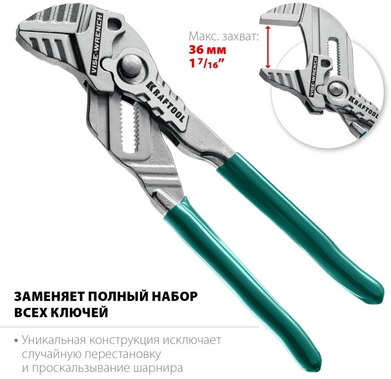 - Клещи переставные-гаечный ключ KRAFTOOL – профессиональный инструмент с постоянно параллельными губкам. Заменит набор из всех ключей и обеспечит полную сохранность хромированного крепежа.