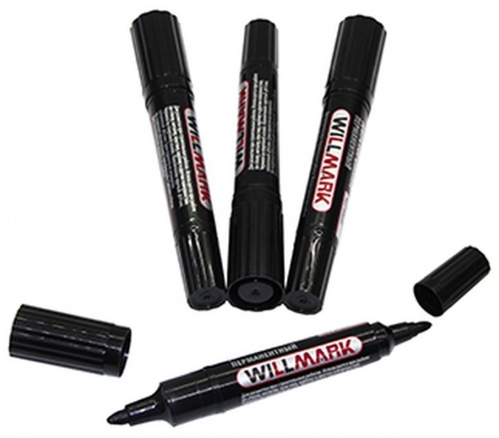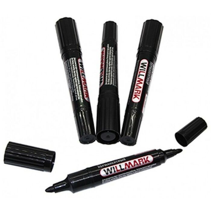 Маркер строительный двусторонний WILLMARK перманентный черный d4 и 6 мм