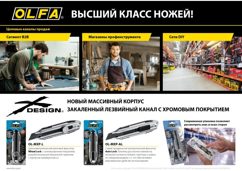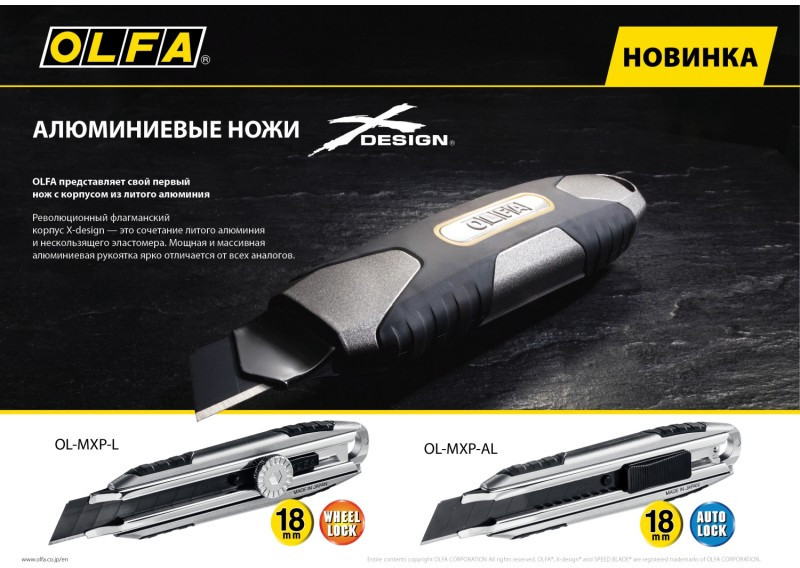 - Нож из литого алюминия OLFA MXP-AL для точного и уверенного реза. Корпус из нержавеющей стали надежно фиксирует лезвие, обеспечивая исключительную долговечность даже при непрерывном использовании. Ультра-острое черное сегментированное лезвие LBB шириной 18 мм на 25% острее стандартных лезвий OLFA, что делает этот универсальный нож выбором профессионалов.