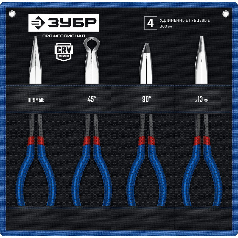 Набор губцевого инструментаимеетудлиненную рабочую частьдля выполнения работ в труднодоступных и узких местах