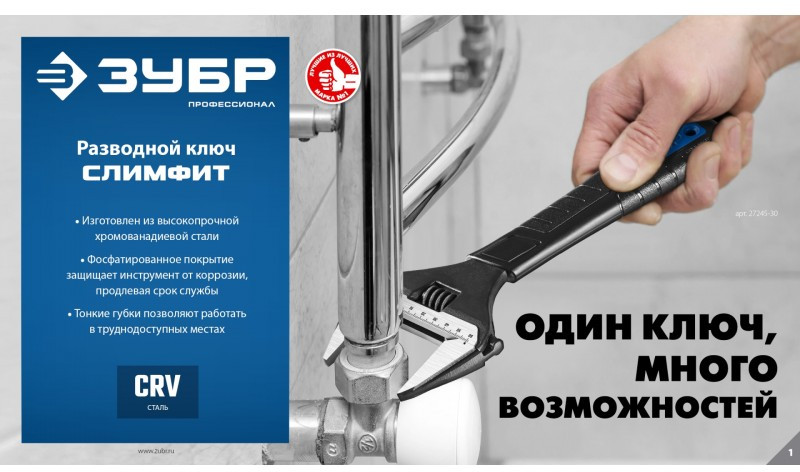Ключи разводные ЗУБР "СлимФит" изготовлены из высокопрочной легированной стали CR-V, защищены от коррозии благодаря фосфатированному покрытию. Обладают повышенным ресурсом и обеспечивают длительную и качественную работу по монтажу и демонтажу резьбовых соединений.