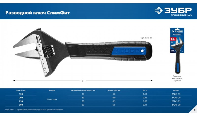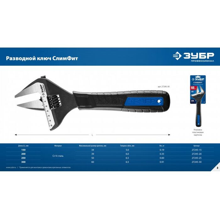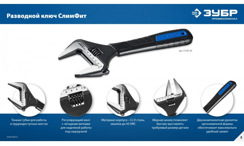Ключи разводные ЗУБР "СлимФит" изготовлены из высокопрочной легированной стали CR-V, защищены от коррозии благодаря фосфатированному покрытию. Обладают повышенным ресурсом и обеспечивают длительную и качественную работу по монтажу и демонтажу резьбовых соединений.