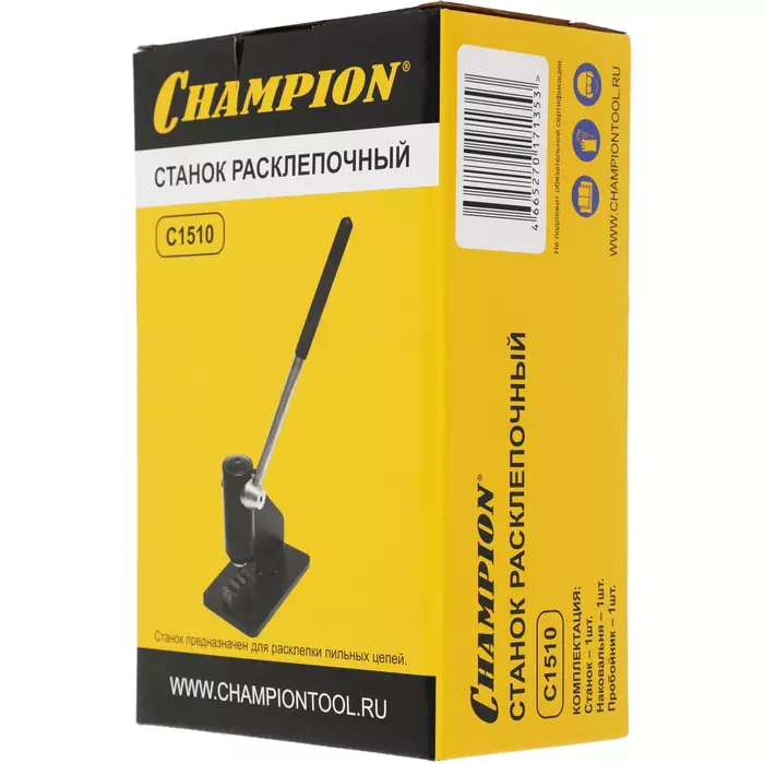 Станок CHAMPION C1510/C188 предназначен для расклепки цепей. Специальные рычаги устройства позволяют легко выбивать заклепки для разъединения звеньев цепи. Перед выполнением работы цепь необходимо разместить на уникальной наковальне станка. Выполнен из сварной стали.