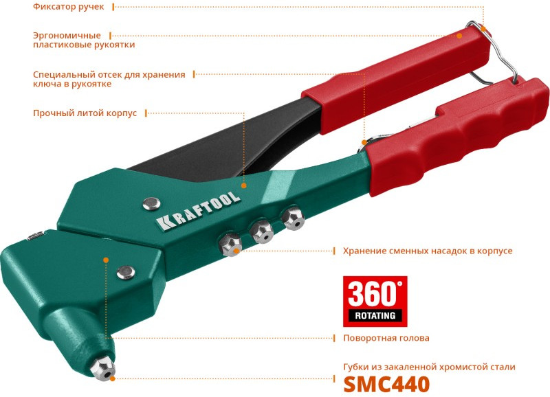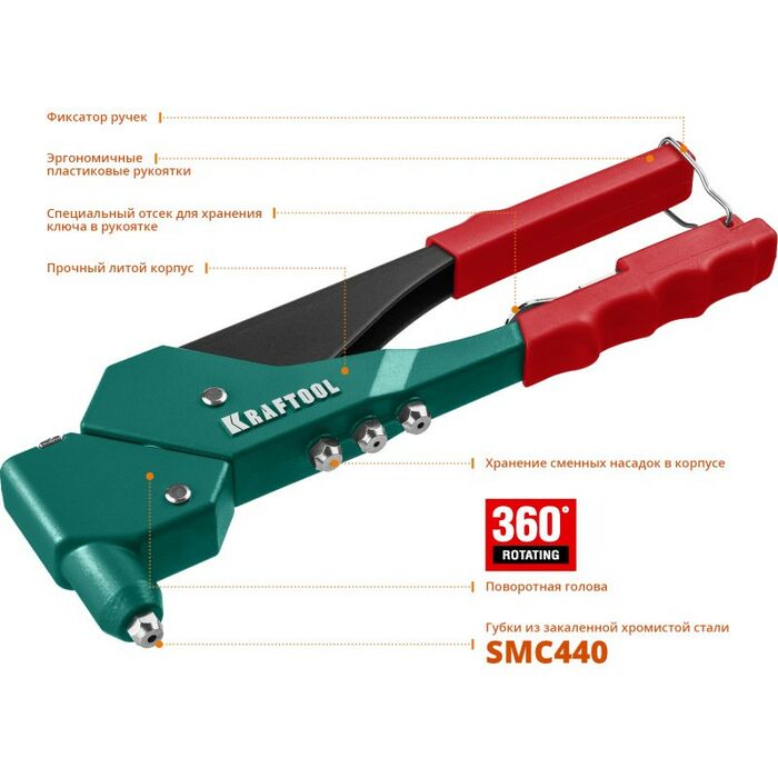 - Тип заклепочника: поворотный