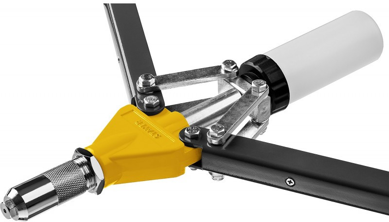 - Монтаж заклепок с минимальным усилием благодаря двухрычажной конструкции