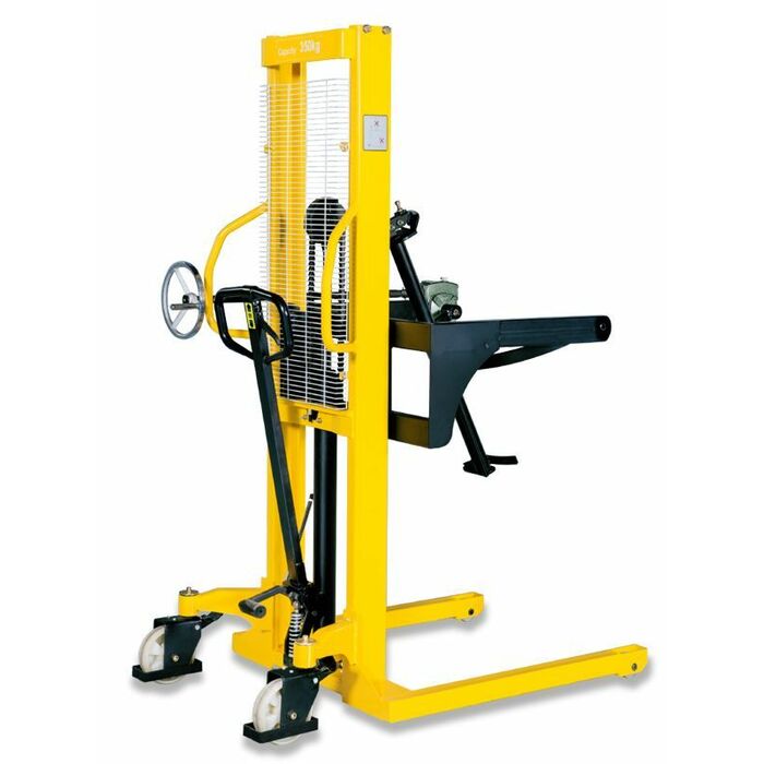 Штабелер бочкокантователь TOR WDS500-2800 — Специальный штабелер, сделанный для поднятия, перевозки и кантования (наклона, переворота) бочек. Модель оснащена надежным держателем бочек и червячным ручным редуктором для переворота бочки. Штабелер простой в обращении и не прихотлив в обслуживании. Максимальный вес бочки может быть 350 кг, что в принципе покрывает практически все материалы, тарированные в бочки. Дополнительным плюсом этой серии бочкокантователей является то, что передние колеса всего 78 мм в диаметре поэтому с помощью него можно заезжать под паллет для подхвата бочки. Серия штабелеров ТОR WDS поднимает бочки на высоту от 1.4 до 2.8 метров. Высота подъема данной модели составляет 3.0 метра что позволяет ставить бочки в 2 яруса.
