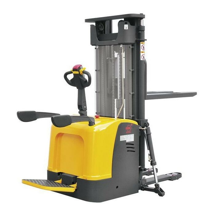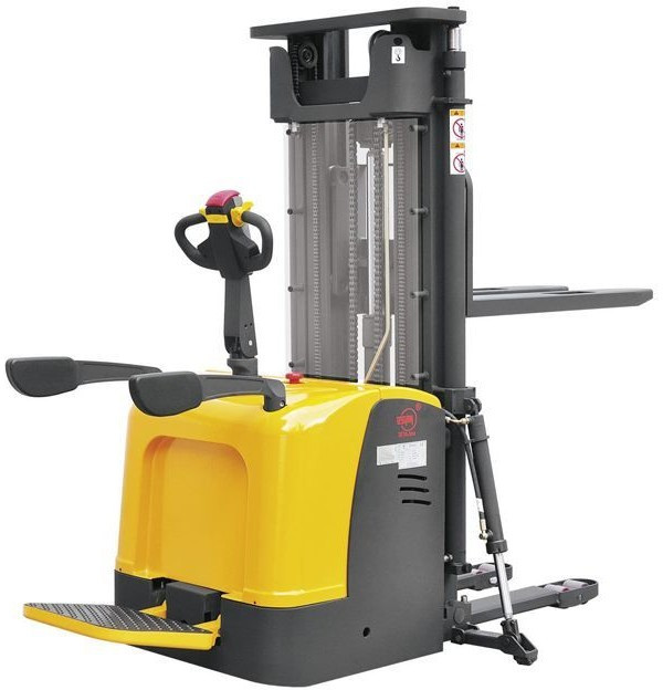 Наши штабелёры соответствуют требованиям безопасности ЕАС, вся продукция сертифицирована. Данный штабелёр работает от электричества не только на подъём, но и на передвижение в горизонтальной плоскости. Обладает лёгким и удобным управлением, высокой манёвренностью. Оснащён электромагнитным тормозом. Для обеспечения устойчивости штабелера при подъеме груза на большую высоту данная модель оснащена специальными дополнительными выдвижными упорами, которые могут быть убраны при транспортировке груза в нижнем положении вил. В качестве основных преимуществ оборудования можно выделить: