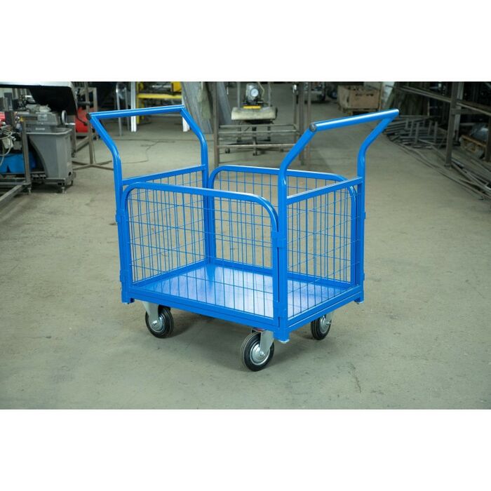 Четырехколесные платформенные тележки с обычной или складной рукоятью востребованы в условиях склада, магазина. Позволяют перевозить грузы небольшого веса. Платформа изготавливается из надежного металлопроката, выдерживает распределенную и точечную нагрузку. Также в конструкцию входят: ручка управления, 4 колеса, металлическая рама.
