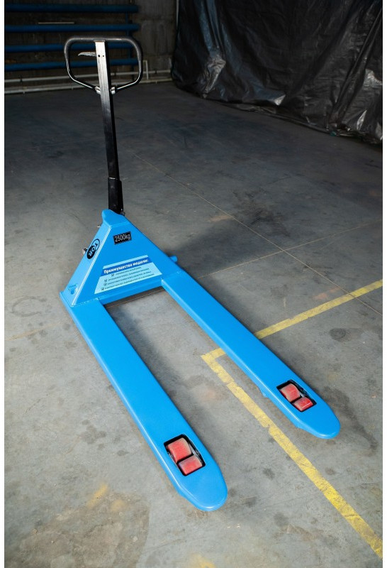 Ширина вил у данной тележки достигает 685 мм при грузоподъемности 2,5 тонны.
