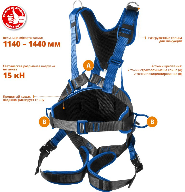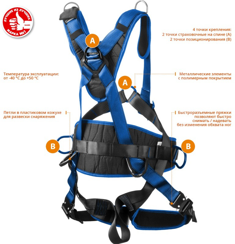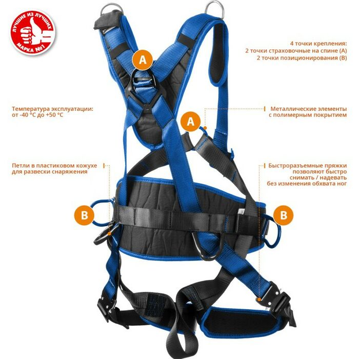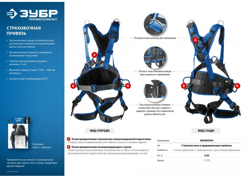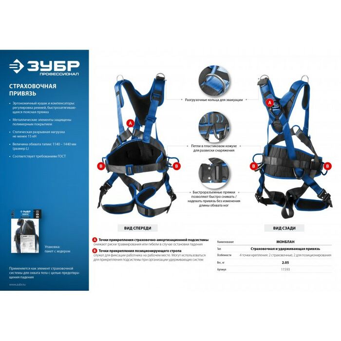 - Страховочная привязь «ЗУБР» – надежное средство защиты от падения с высоты.
