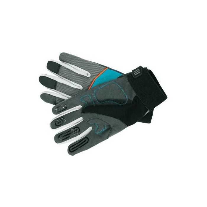 Эти специальные перчатки GARDENA обеспечат надежный захват инструмента и удержание в руке. Инновационное покрытие области пальцев гарантирует отсутствие скольжения инструмента в руках во время работы. Амортизирующие вставки в области ладони создают приятный комфорт - в особенности, когда необходимо уменьшить воздействие, создаваемое механическим садовым инструментом или техникой с двигателем. Специально разработанный покрой области пальца оптимизирует посадку на руке, обеспечивает безопасное удерживание инструмента и увеличивает срок службы перчаток. Особенно, если вы работаете с топором, ножницами для обрезки живой изгороди или сучкорезом. В целом перчатки изготовлены из специального, дышащего тканевого материала, который предотвращает запотевание рук. Если же вы начинаете потеть во время работы, то всегда сможете комфортно вытереть пот с лица благодаря наличию на большом пальце вставки из мягкого материала (специально для этих целей). Прочная манжета на запястье регулируется и защищает от грязи и травм.