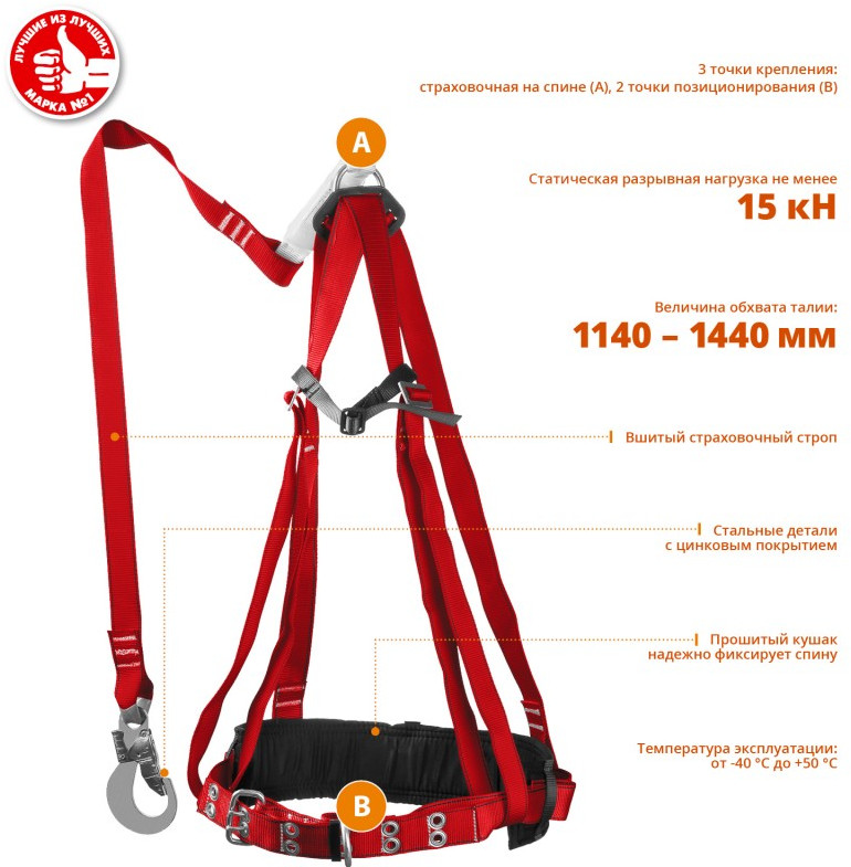 Лямочный пояс «ЗУБР» – надежное средство защиты от падения с высоты.