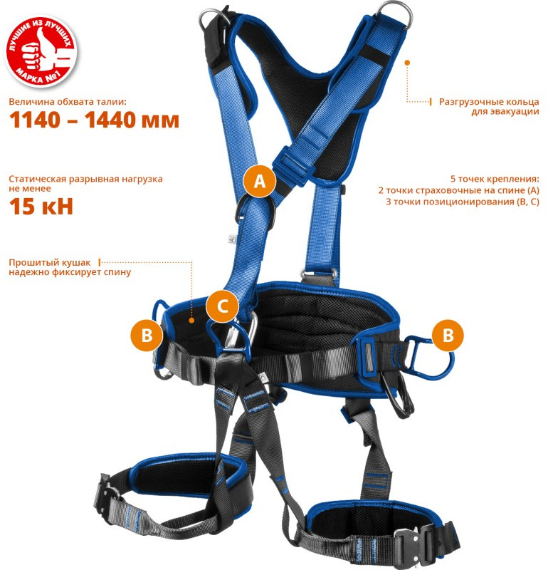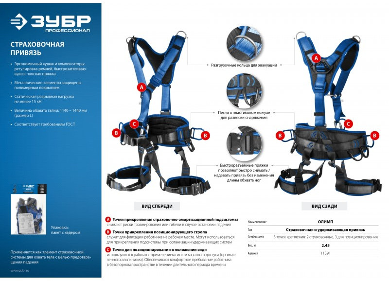 - Страховочная привязь «ЗУБР» – надежное средство защиты от падения с высоты.