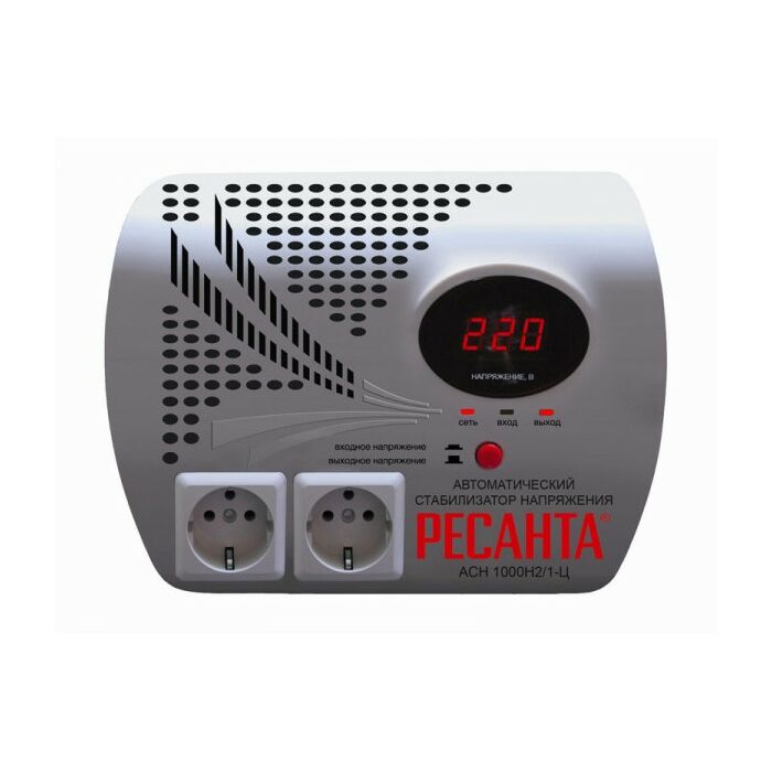 Однофазный цифровой стабилизатор Ресанта АСН-1000Н/1-Ц - это бытовой прибор, к которому можно подключить потребитель мощностью до 500 Вт. Прибор обеспечивает сохранность потребителя в случае скачков напряжения в сети электроснабжения или при коротком замыкании. Стабилизатор АСН-1000Н/1-Ц стоит купить, ведь его можно разместить в любом удобном месте, например на компьютерном столе или на кухне, для подключения бытовой техники.