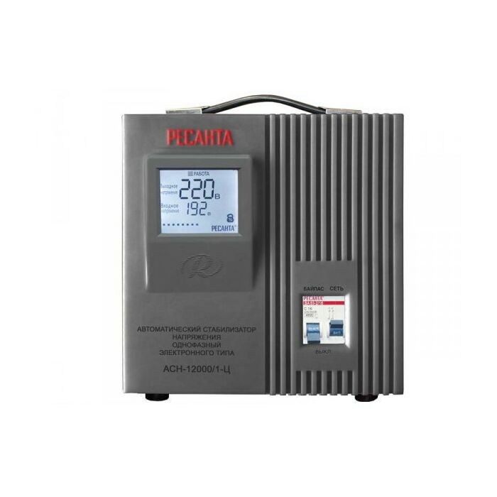 Однофазный электронный стабилизатор Ресанта АСН-12000/1-Ц оснащен микропроцессорным управлением, цифровым индикатором напряжения. На дисплее отображается входное/выходное напряжение.