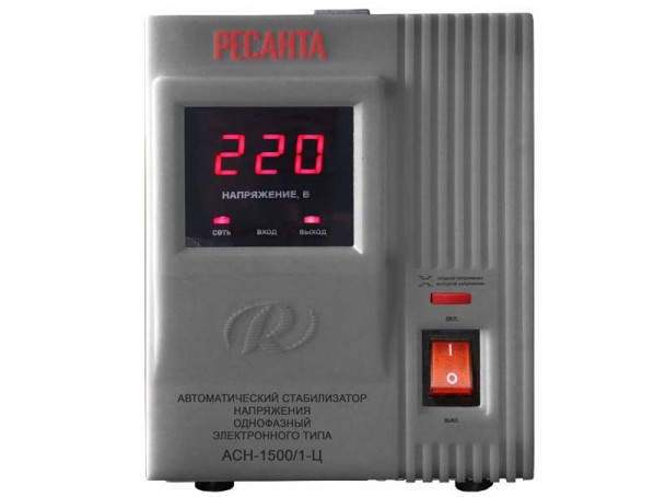 Однофазный электронный стабилизатор Ресанта АСН-1500/1-Ц оснащен микропроцессорным управлением, цифровым индикатором напряжения. На дисплее отображается входное/выходное напряжение.