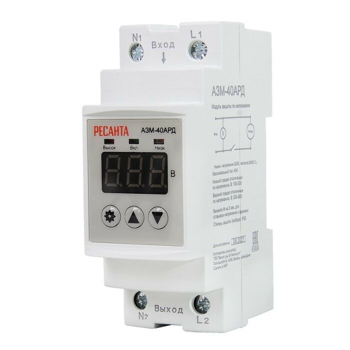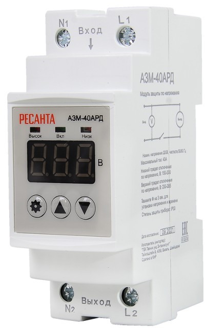- Блок защиты по напряжению производителя Ресанта АЗМ-40АРД представляет собой надёжное автоматическое устройство защиты бытовых приборов от перепадов напряжения в электросети.