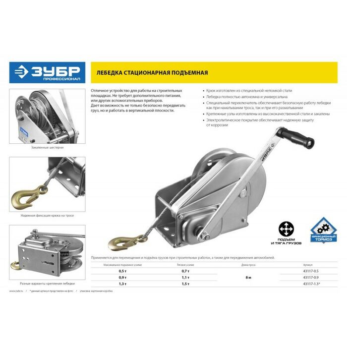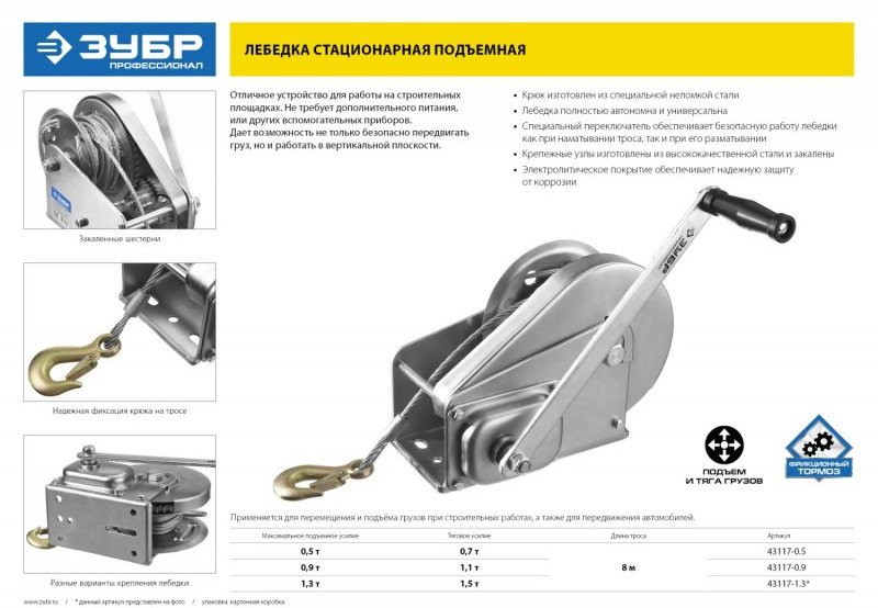 - Отличное устройство для работы на строительных площадках. Не требует дополнительного питания или других вспомогательных приборов. Возможность безопасно не только передвигать груз, но и работать в вертикальной плоскости делает лебедку отличным универсальным устройством для перемещения грузов