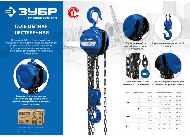- Оптимальное передаточное число обеспечивает эффективную работу при небольшом усилии на тяговую цепь