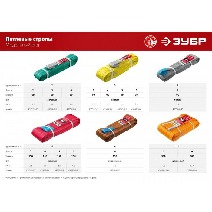 - Ленты для строп окрашены в свой цвет в соответствии с международным цветовым кодом.