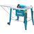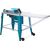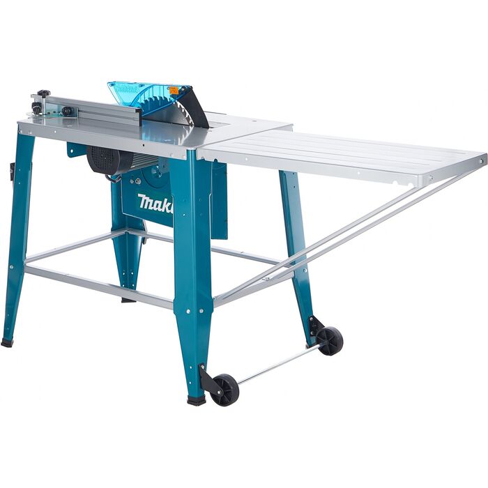 Имеет прочный алюминиевый распиловочный стол 550х880 мм и удлинительный стол 400х800 мм, который может располагаться как сбоку для раскроя широких материалов, так и удлинять распиловочный стол для раскроя длинных заготовок. Для удобства транспортировки оборудован колесиками и двумя ручками.