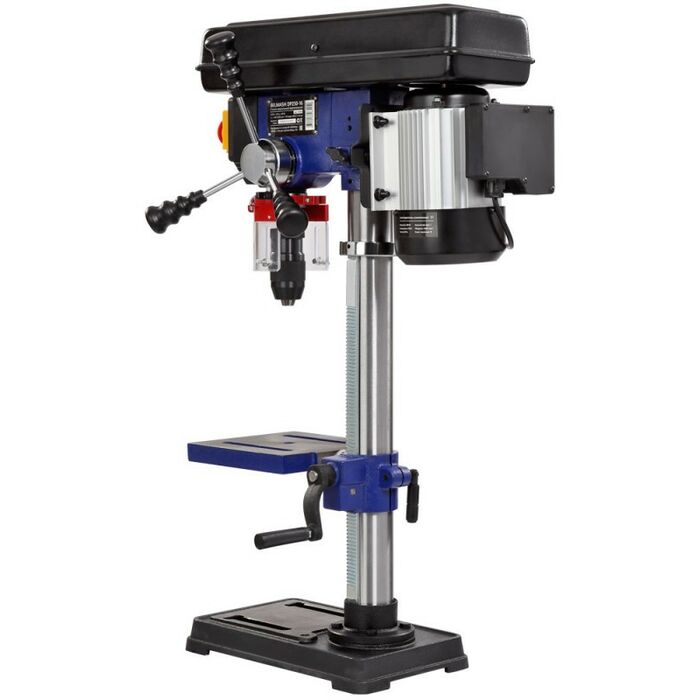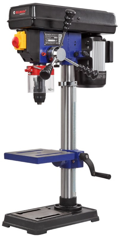 - Модель DP250-16 простая, но обладает целым рядом достоинств. Стол, опора и корпус сверлильной головки выполнены из чугуна, что придает оборудованию серьезный вес - 30 килограмм. Двигатель асинхронный, мощностью 500 Вт. Станок высокий – 855 мм, подходит для обработки заготовок большой толщины. Максимальное расстояние между шпинделем и столом – 430 мм.