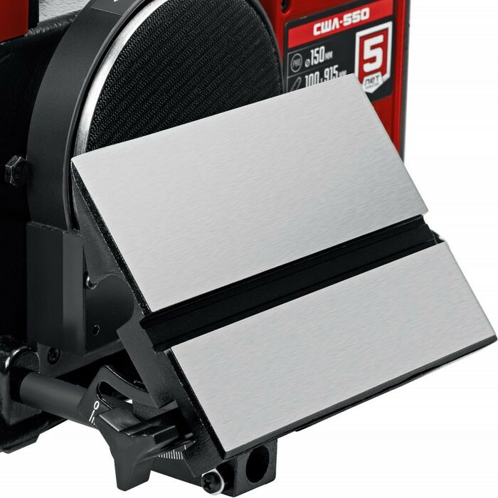 - Угловой упор и фиксация угла наклона стола обеспечивают точность обработки