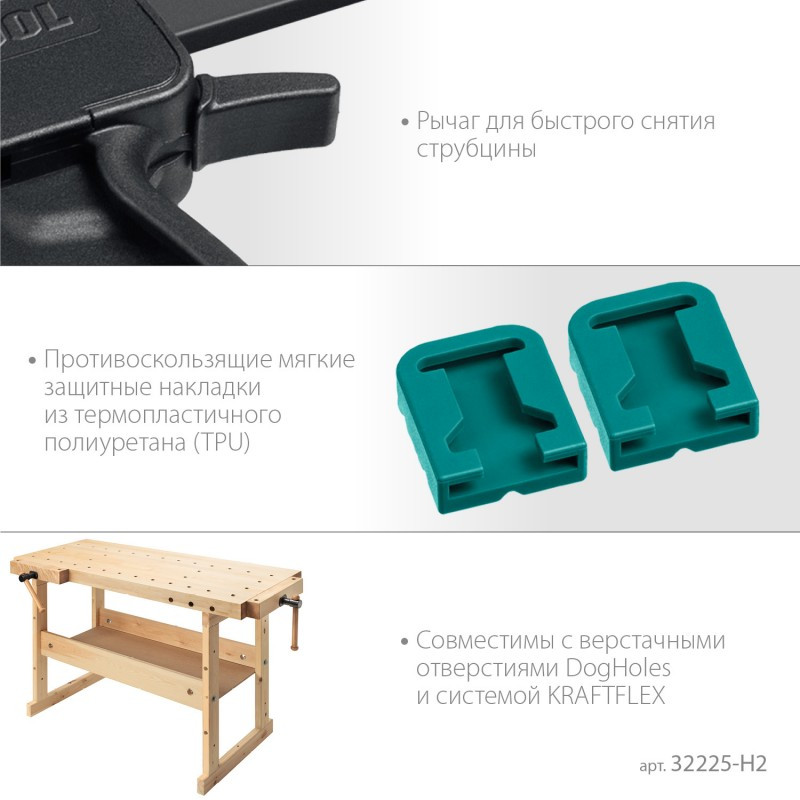 - Противоскользящие мягкие защитные накладки на губки из термопластичного полиуретана (TPU).
