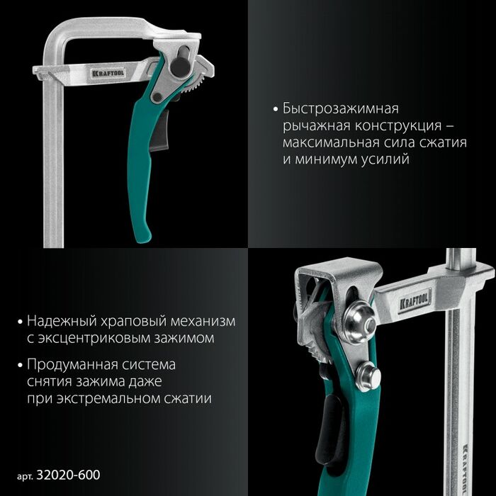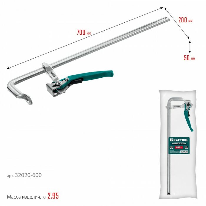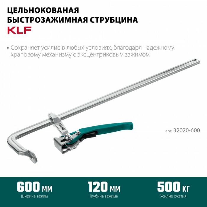 Струбцина быстрозажимная KRAFTOOL KLF-600 600/120 мм [32020-600]