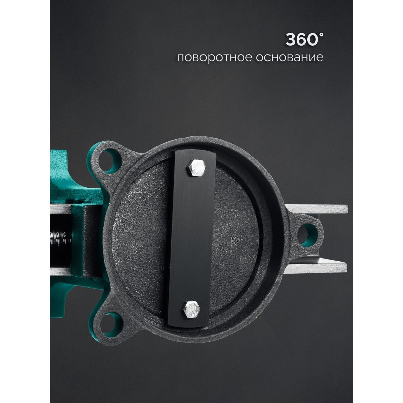 - Поворотное основание позволяет перемещать корпус тисков в горизонтальной плоскости на угол от 0 до 360 градусов