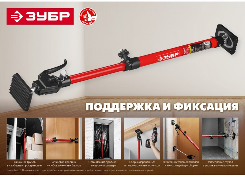 - Телескопический распор Зубр вспомогательный инструмент облегчающий фиксацию дверных коробок, гипсокартона или объемных грузов во время перевозок