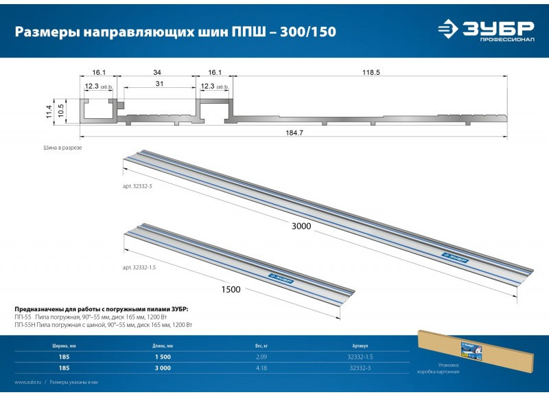 Шина направляющая Зубр ППШ-150 1500 мм [32332-1.5]