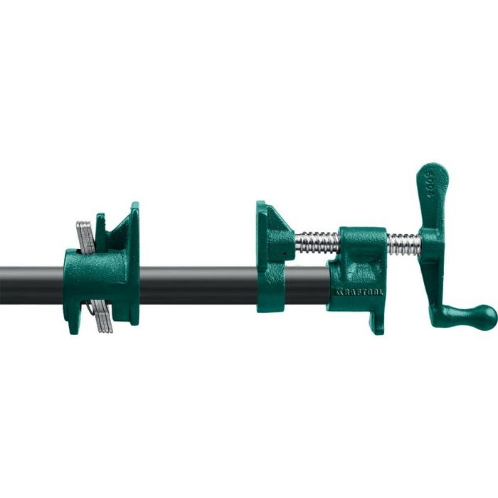 Трубная струбцина KRAFTOOL P-34 с неограниченной шириной захвата - надежный зажимной/распорный инструмент. Удобная рычажно-поворотная рукоятка, широкие ножки в основании -беспечивают максимальный комфорт при выполении работ. Усилие - до 600 кгс.