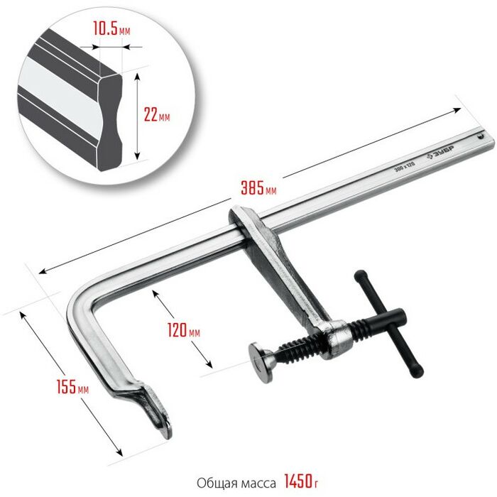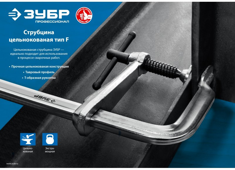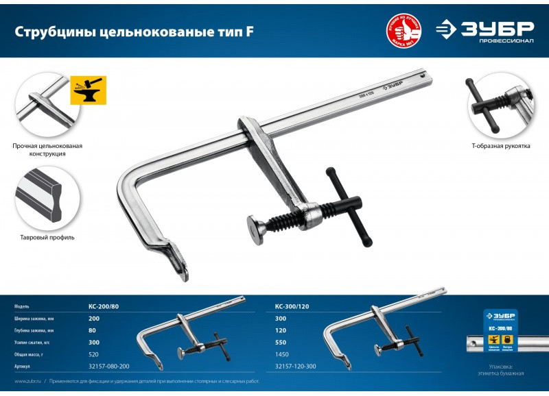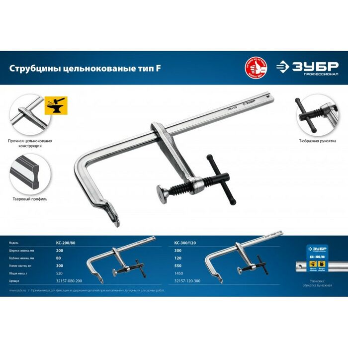 Цельнокованая струбцина Зубр КС-300/120 F 300х120 мм [32157-120-300]