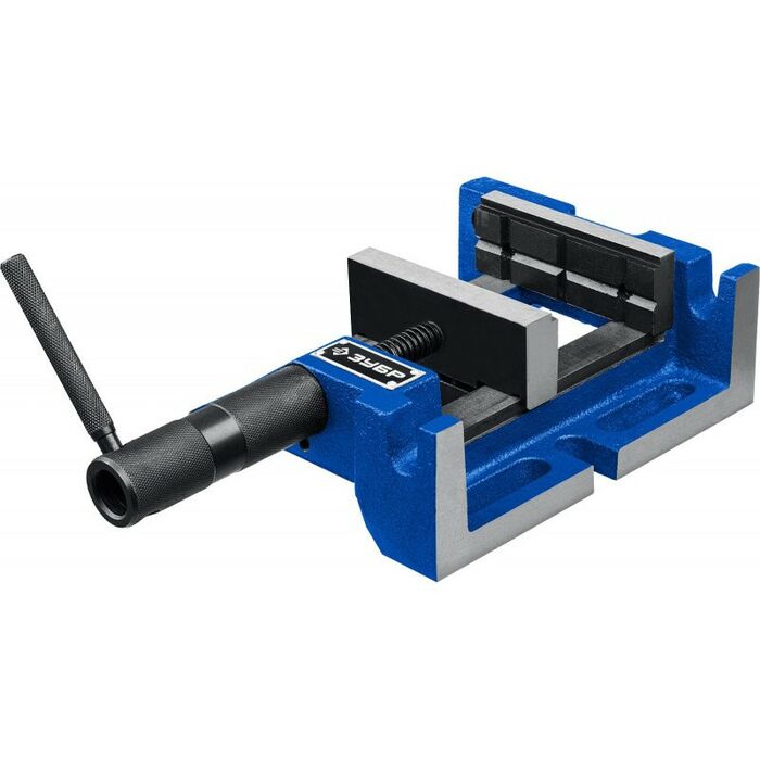 - Призматические пазы неподвижной губки позволяют зажимать горизонтально и вертикально цилиндрические заготовки