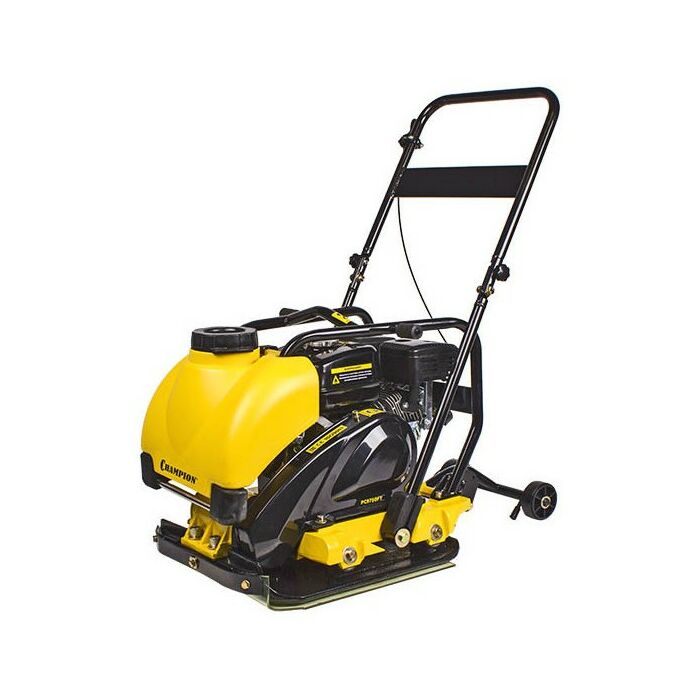Виброплита Champion PC9750FT - предназначена для уплотнения песка, гравия, битумногравийной смеси, каменной брусчатки при строительстве и ремонте дорог и тротуаров, автомобильных стоянок, площадей, спортплощадок, фундаментов, инженерных сетей и других строительных работах. Виброплита Champion PC9750FT оснащена фирменным 4-тактным одноцилиндровым двигателем мощностью 6.5 л.с. Запуск двигателя производится ручным стартером. Объем топливного бака составляет 3.6 л, который рекомендуется заправлять бензином не ниже АИ-92. Контроль уровня масла в картере, объем которого 0.6 л осуществляется с помощью датчика. При недостаточном уровне масла двигатель не запустится.