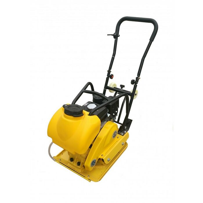 - Виброплиты бензиновые. Популярны, ведь у них высокая мощность и они бюджетнее дизельных аналогов. Могут работать как в мороз, так и в жару. В отличие от электрических моделей, свободно передвигаются по площадке. При всех плюсах, у них внушительный вес и уровень шума.
