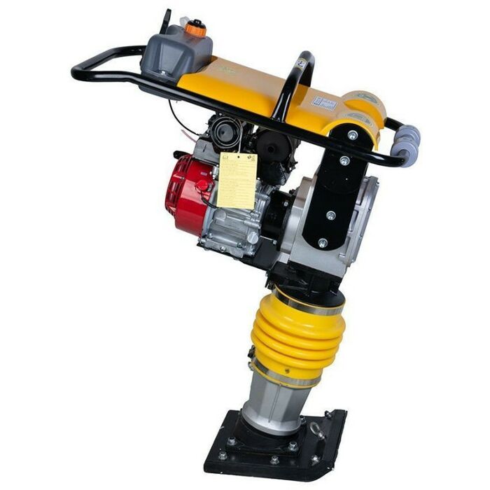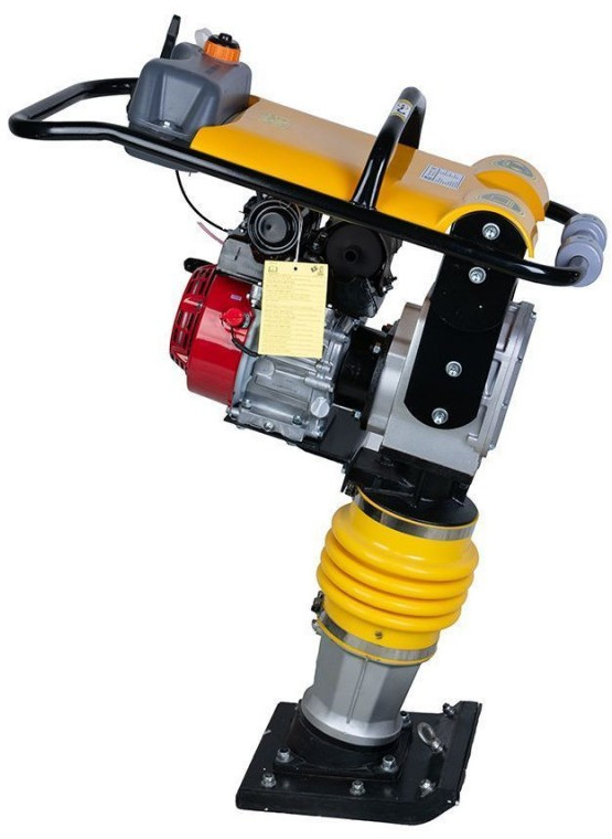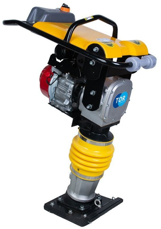 Вибротрамбовка TOR HCR80C (Honda) бензиновым двигателем Honda 5,5л.с. Универсальная модель с высокой силой удара 10кН в алюминиевом корпусе. Большая вариативность настроек частоты удара с 480 до 700 , амплитуды удара 40-65мм и рабочий вес 82 кг позволяет работать с любыми типами грунтов и асфальтом. Используется для трамбовки грунта в труднодоступных местах и в условиях ограниченного пространства. Наиболее эффективна, если площадь уплотнения не превышает 10м2. С помощью вибротрамбовок укрепляют грунт вокруг колон, свай, труб а так же в углах, траншеях где не может работать более крупная техника, так же вибротрамбовки востребованы в дорожном строительстве и при проведении ремонтных работ.