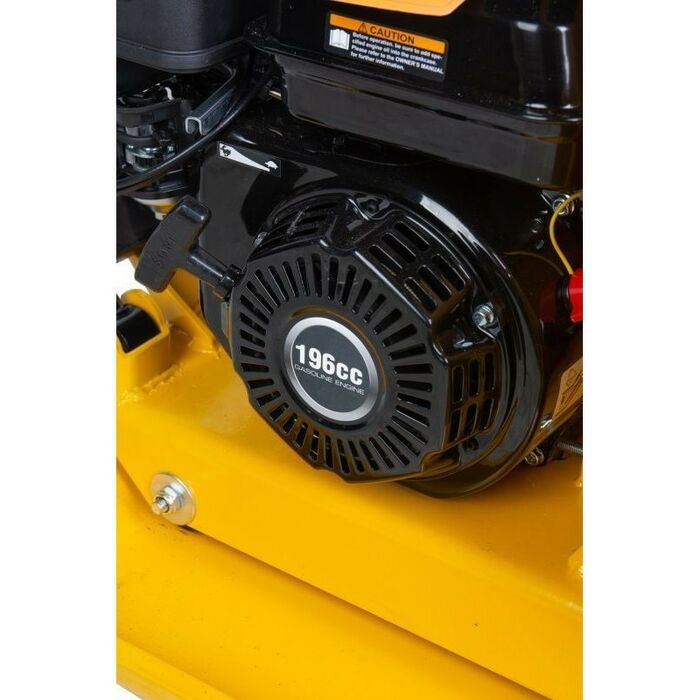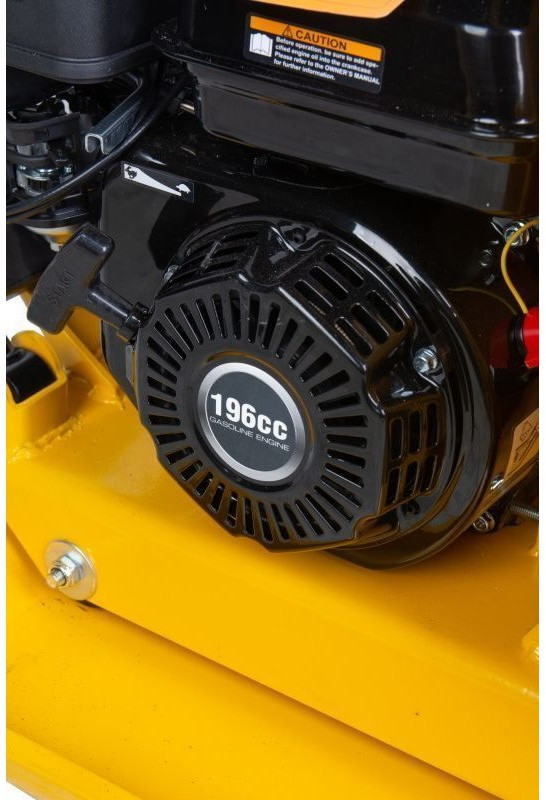 Виброплита T-100 (29165) оснащена бензиновым двигателем LCT (4,8 кВт / 6,5 л.с) объемом 196 куб.см, относясь к классу среднетяжелых плит. Этот тип плиты востребован среди профессиональных строителей. Ее вес составляет 106 кг, размер плиты 580x500 мм, сила удара 25 кН, частота колебаний 5500 кол/мин, а глубина уплотнения — 350 мм.