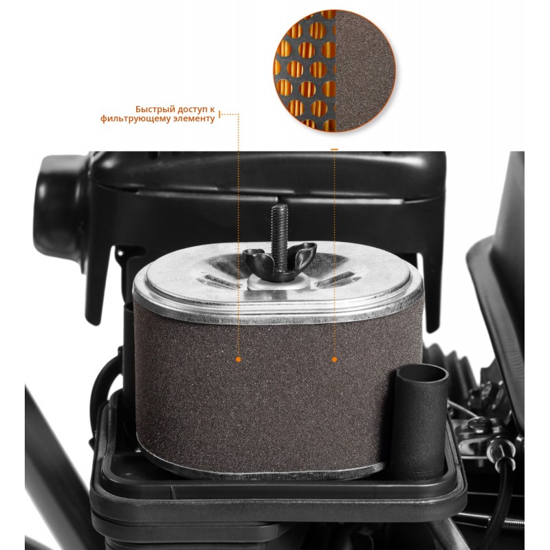 - Регулятор дросселя всегда под рукой на рукоятке, что облегчает эксплуатацию