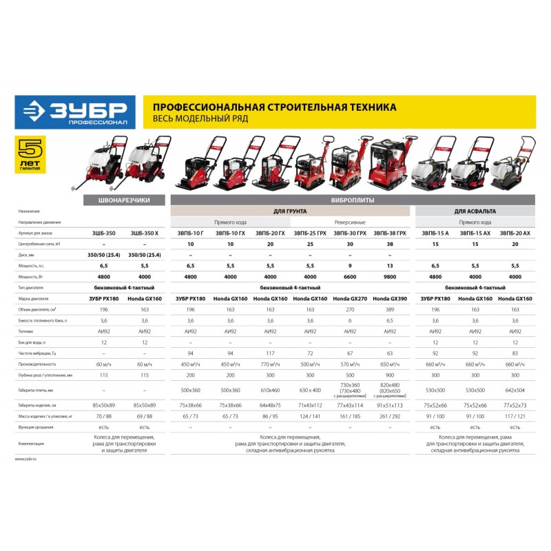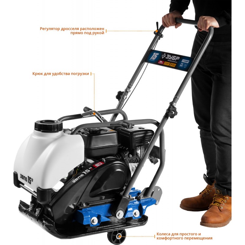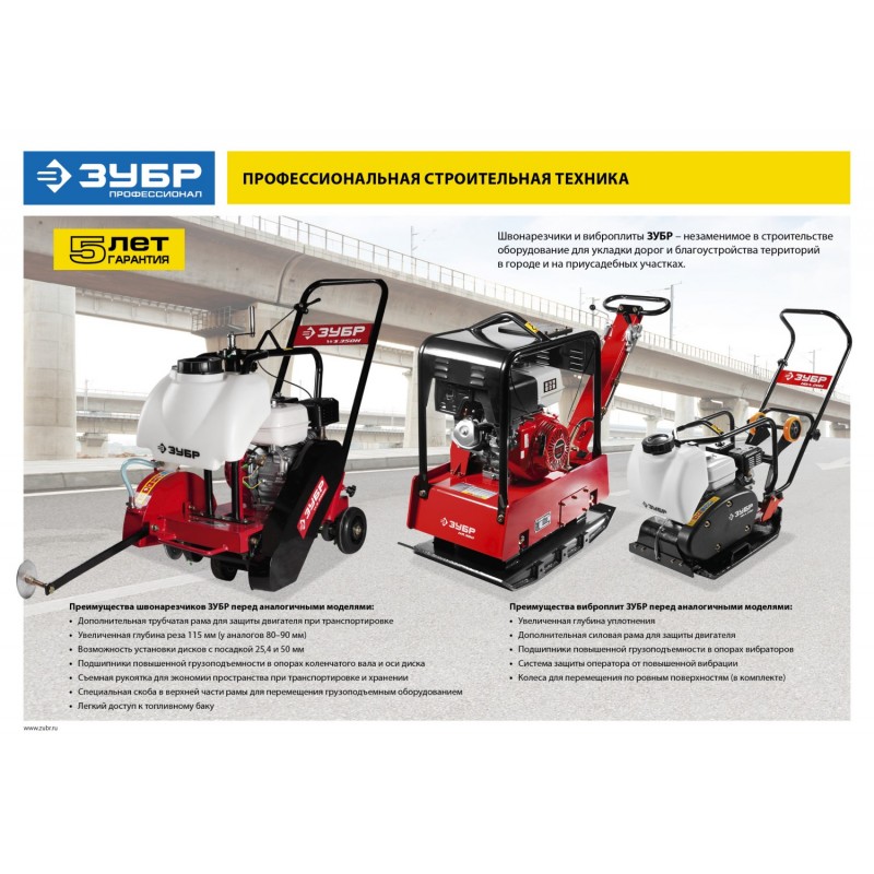 Новая линейка строительной техники для профессионалов. Виброплита предназначена для уплотнения бетонных, асфальтовых и сыпучих материалов, а также для формирования уплотненных поверхностей. Оптимальные технические характеристики позволяют работать еще эффективнее и в любых условиях, а благодаря колесам, облегчающим транспортировку и эргономичной рукоятке ежедневная работа с виброплитой будет простой и удобной. Четырехтактный двигатель ″ЗУБР″ обеспечит беспроблемную эксплуатацию и потребует минимального сервисного обслуживания за весь срок использования.