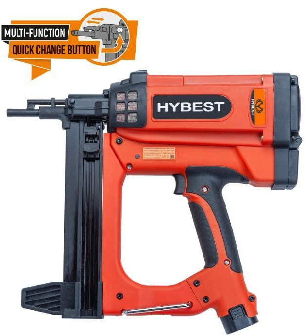 Новинка 2022 года! Обновленный газовый монтажный пистолет HYBEST GSR40A с функцией MULTI-FUNCTION QUICK CHANGE BUTTON®. Функция MULTI-FUNCTION QUICK CHANGE BUTTON® позволяет производить замену насадок путем нажатия кнопки. Теперь нет необходимости разбирать инструмент. Нажми на кнопку и произведи замену насадки!*