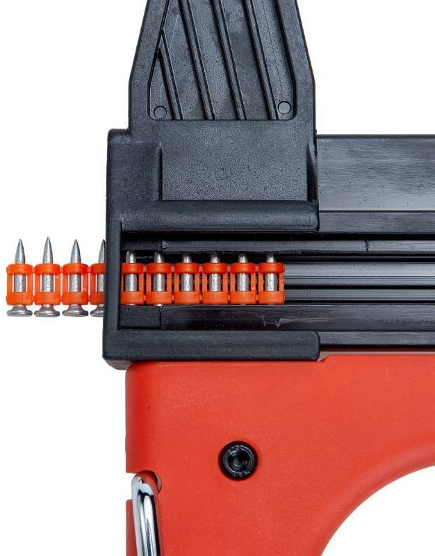 - Большая мощность при забивании гвоздя - позволяет надежно прибивать профнастил как несъемную опалубку к стальным конструкционным балкам большого сечения;